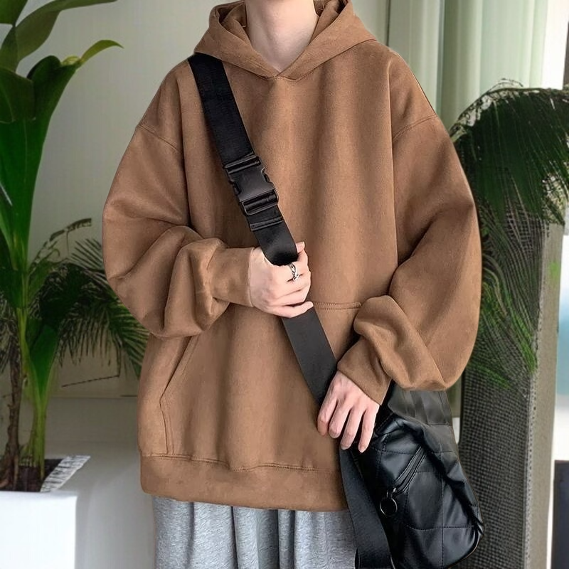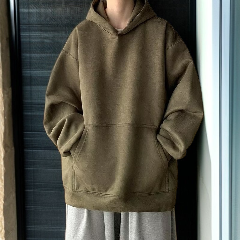 フード付きカップルスウェットシャツカジュアルレトロヘビーウェイトスエードルーズジャケット